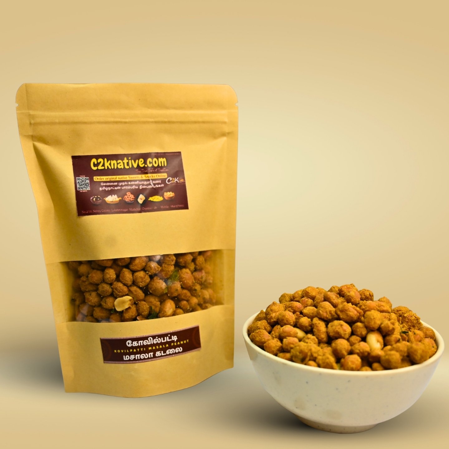 Unlike regular peanut snacks, Kovilpatti Masala Kadalai stands out for its traditional preparation using freshly ground spices, curry leaves, and a perfect balance of heat and crispiness. Each batch is handcrafted to preserve its authentic regional taste and aroma.