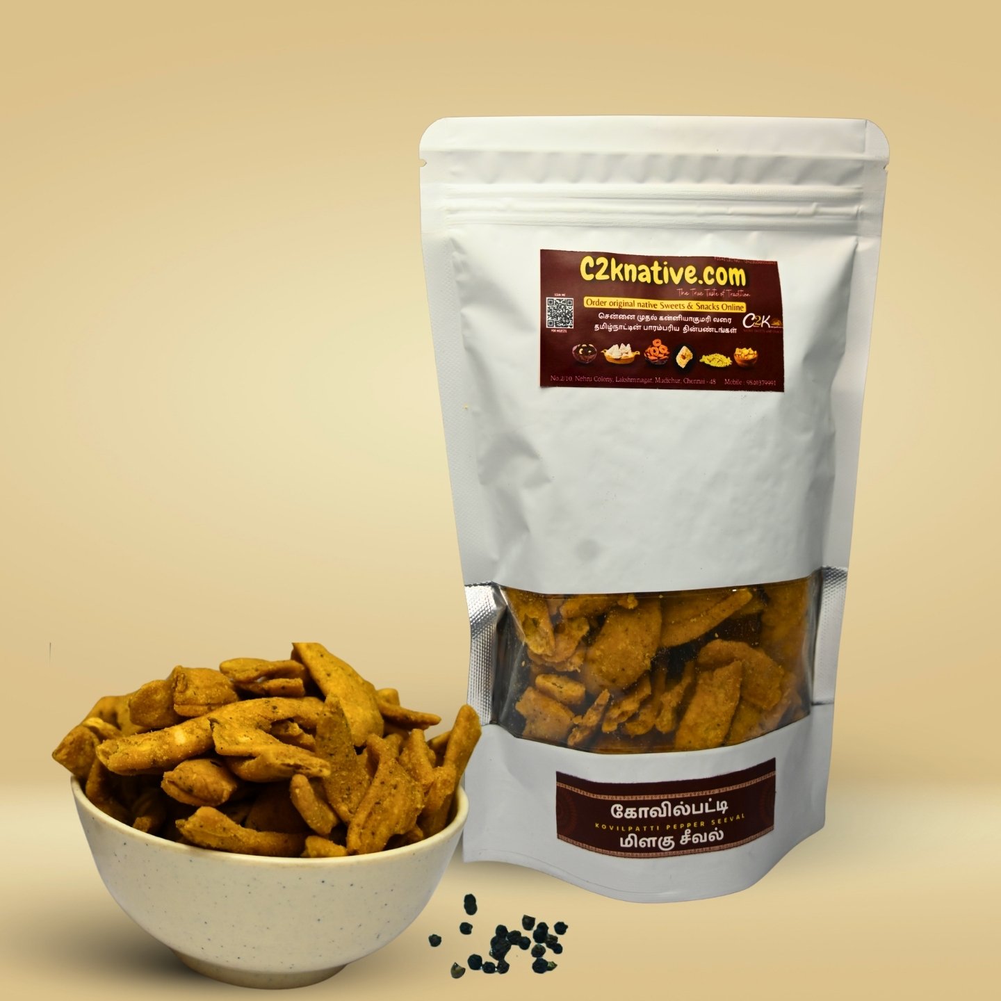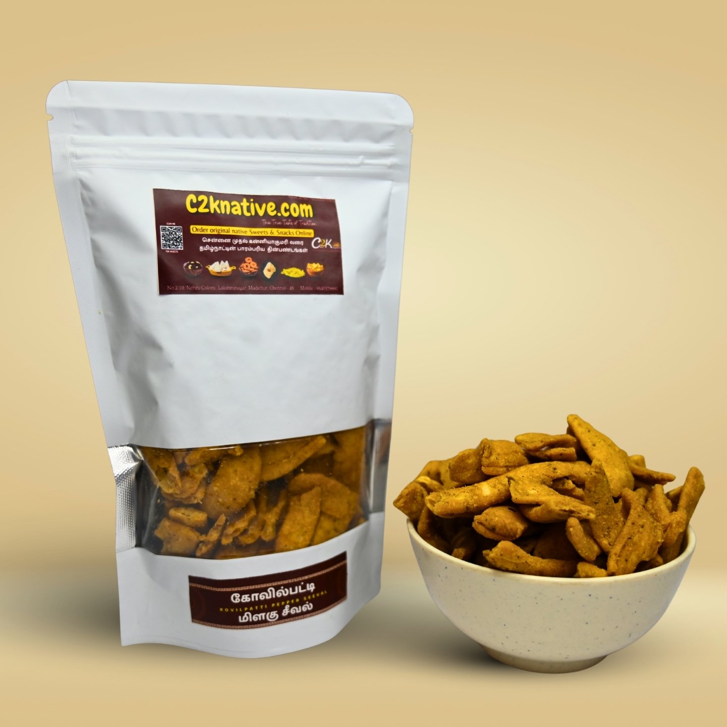 Its bold peppery taste makes it a perfect tea-time snack or a crunchy accompaniment to festive occasions. Handcrafted in small batches, Kovilpatti Milagu Seeval preserves the authentic taste and aroma that the region is famous for.